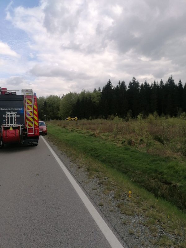 Wir trafen zeitgleich mit dem Rettungshubschrauber an der Einsatzstelle ein. Ein alleinbeteiligter Motorradfahrer war auf der Ortsverbindung Grünbach-Muldenberg verunfallt und wurde bereits vom Rettungsdienst versorgt. Wir sicherten die Einsatzstelle ab und halfen bei der Rettung des Verletzten. Danach konnte die Einsatzstelle an die Polizei zur Unfallaufnahme übergeben werden, und die Kameraden rückten wieder ein.