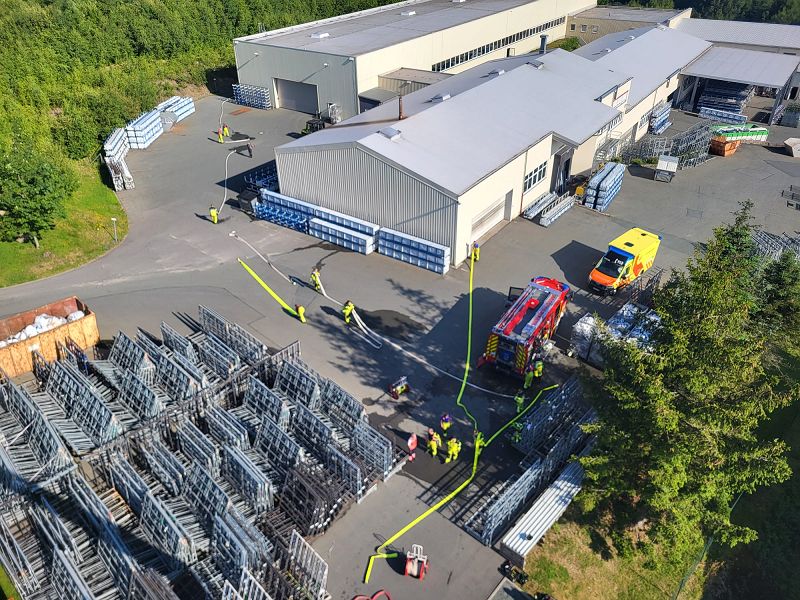 Das notwendige Löschwasser konnte aus dem, zum Firmengebäude gehörenden, Löschwasserrückhaltebecken nur 200 m entfernt entnommen werden.
