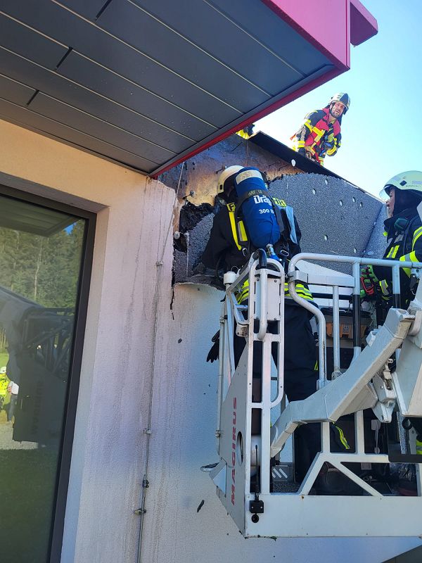 Das Gebäude ist in einer Holz-Fertigteilbauweise errichtet worden. Man kann sich leicht denken, was hätte passieren können. Doch durch das schnelle Erkennen des Brandes und durch das schnelle und zielgenaue Handeln der Einsatzkräfte war der entstandene Schaden überschaubar und Wasserschaden wurde gar keiner verursacht!