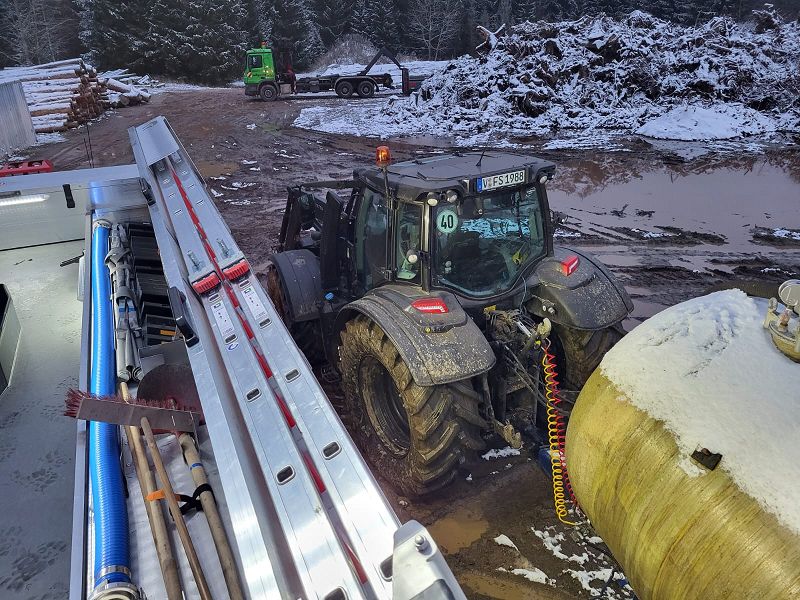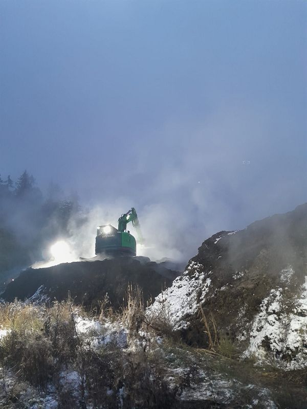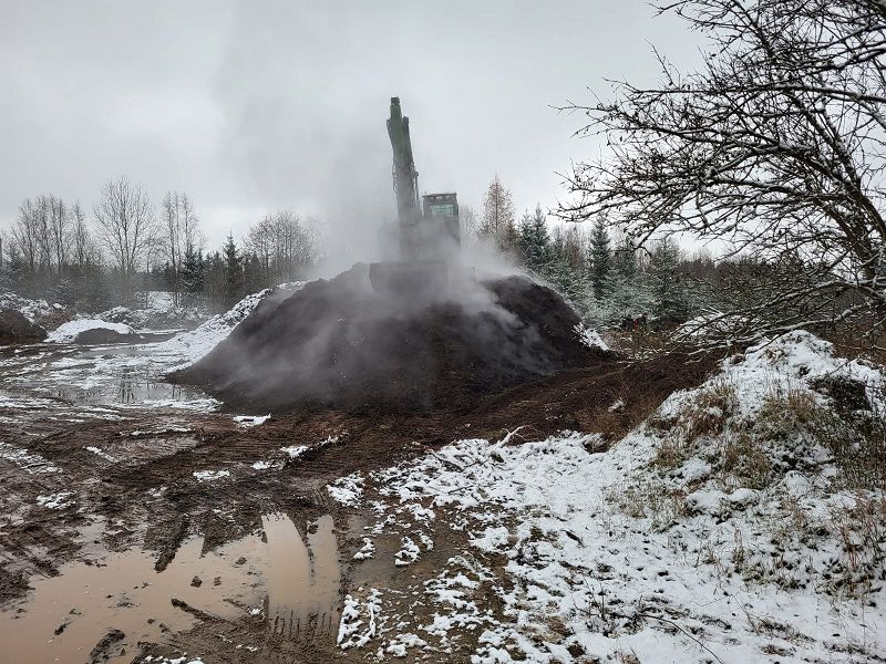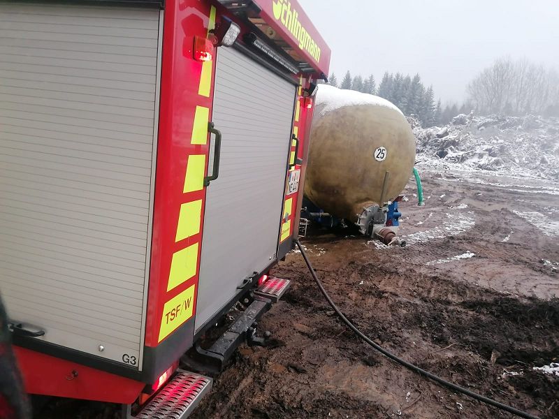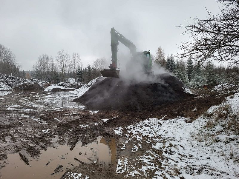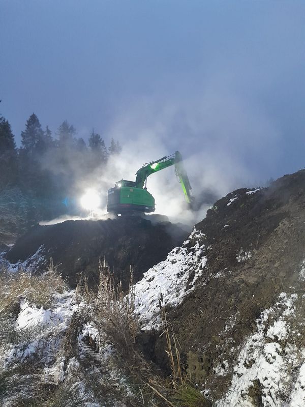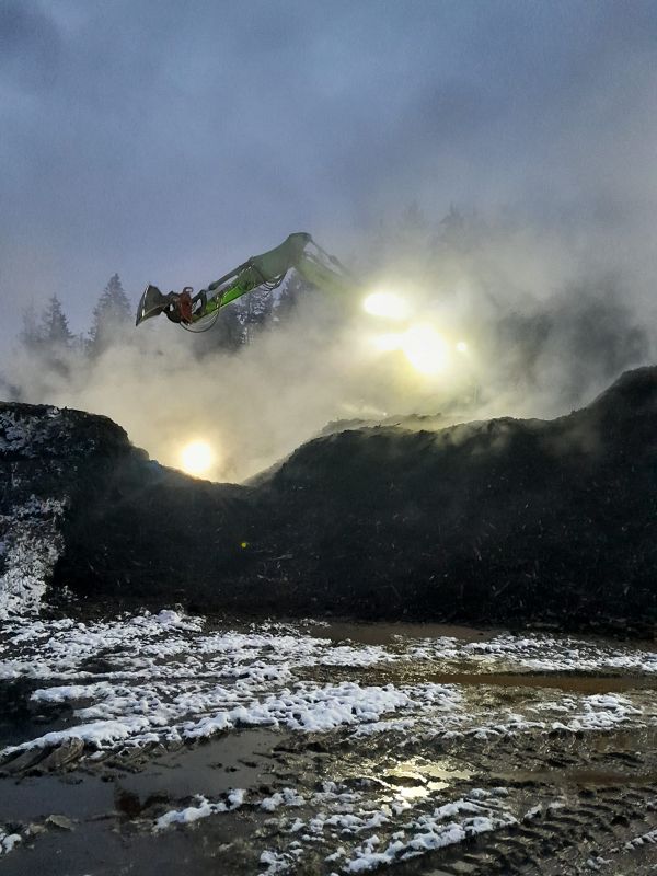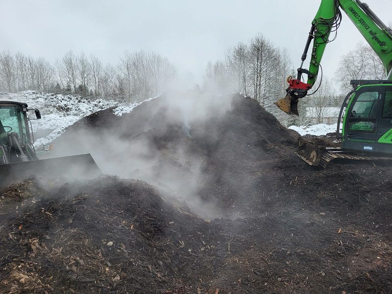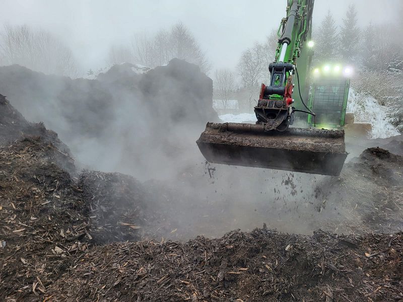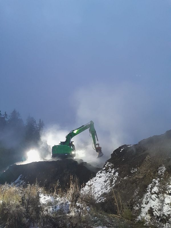 Bei Eintreffen der Feuerwehr war bereits der Eigentümer mit Baggern im Einsatz um den ca. 400m³ großen Haufen Schreddermaterial (Wurzeln, Gehölz, etc) zu trennen. Mit Hilfe der Feuerwehr wurden die aufgedeckten Glutnester abgelöscht. Nach Einschätzung der Einsatzleitung wurde der Einsatz am Abend zunächst für beendet erklärt. Mit Hilfe der Wärmebildkamera wurde der Haufen kontrolliert. Da kein Wasser vor Ort war, wurde mit Hilfe eines ansässigen Bauers 10.000l Wasser im Fasshänger geholt, der Rest wurde mittels Pendelverkehr des HLFs bereitgestellt. Im Verlauf des Einsatzes wurden ca 26.000l Wasser aus 2 C-Rohren eingesetzt.