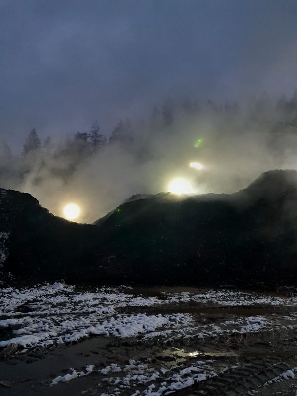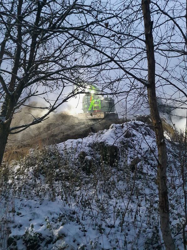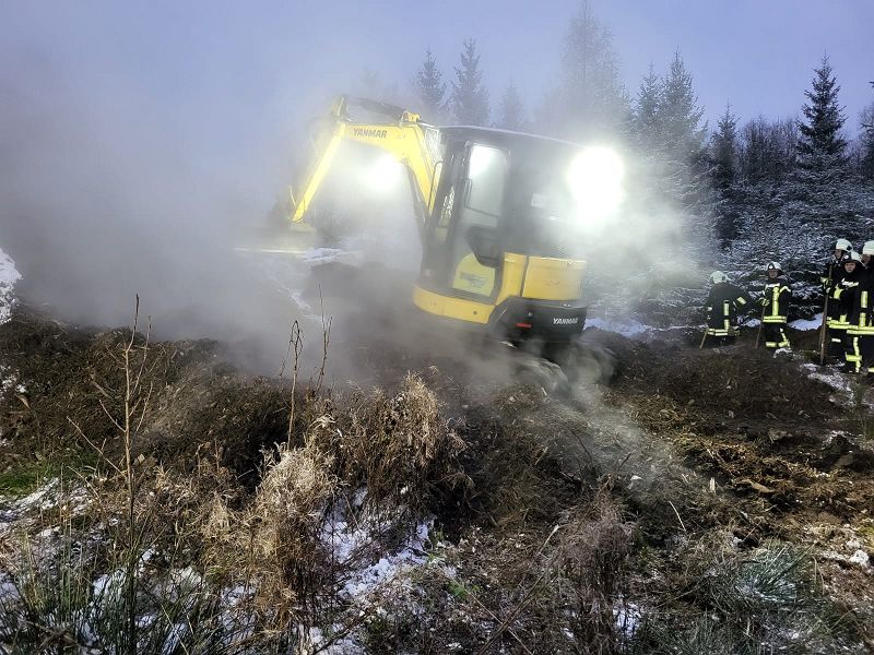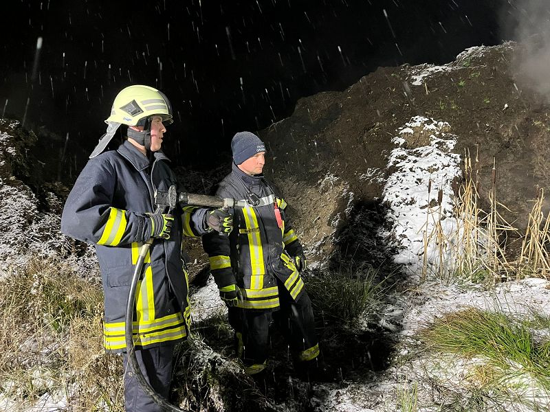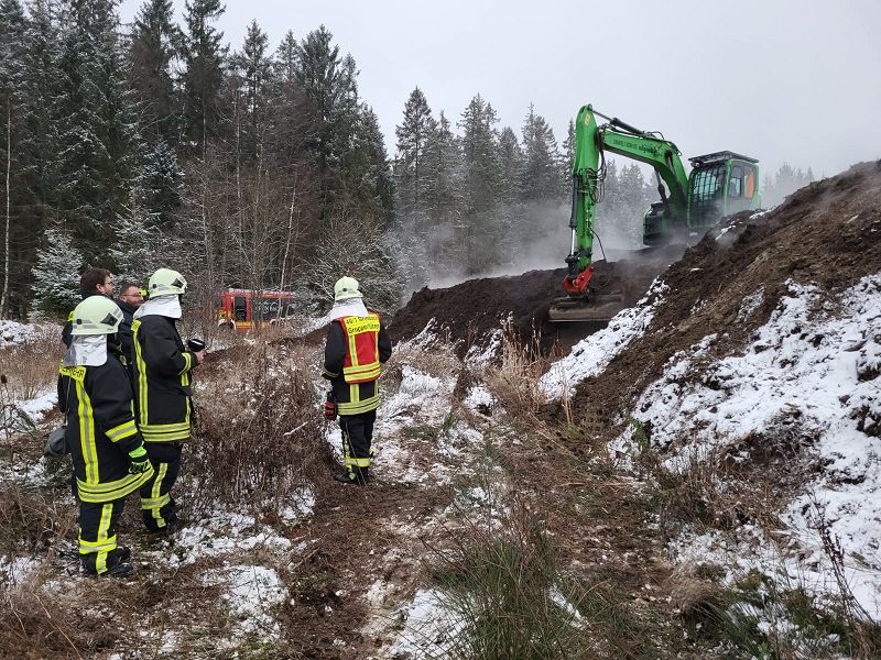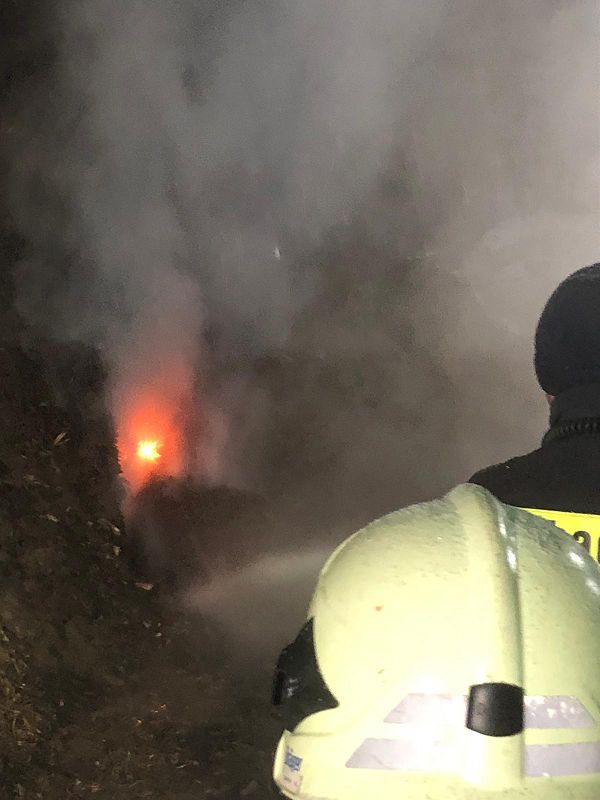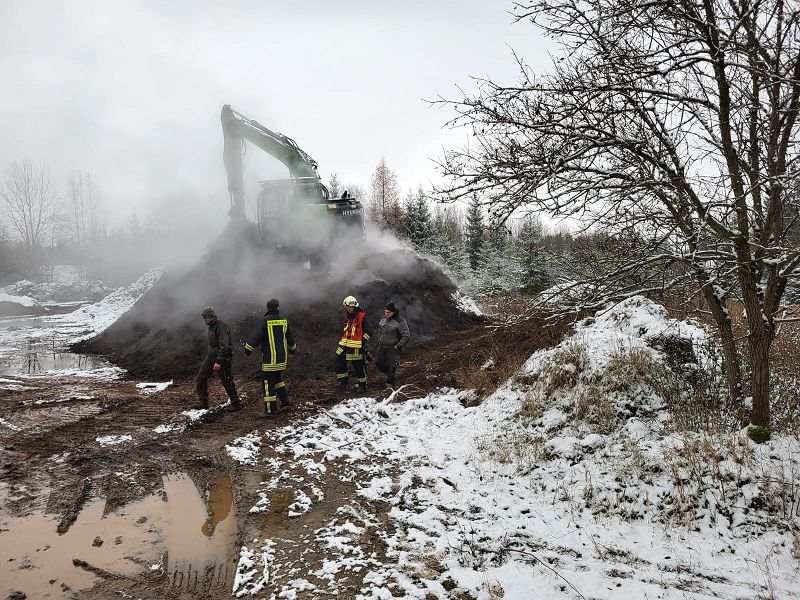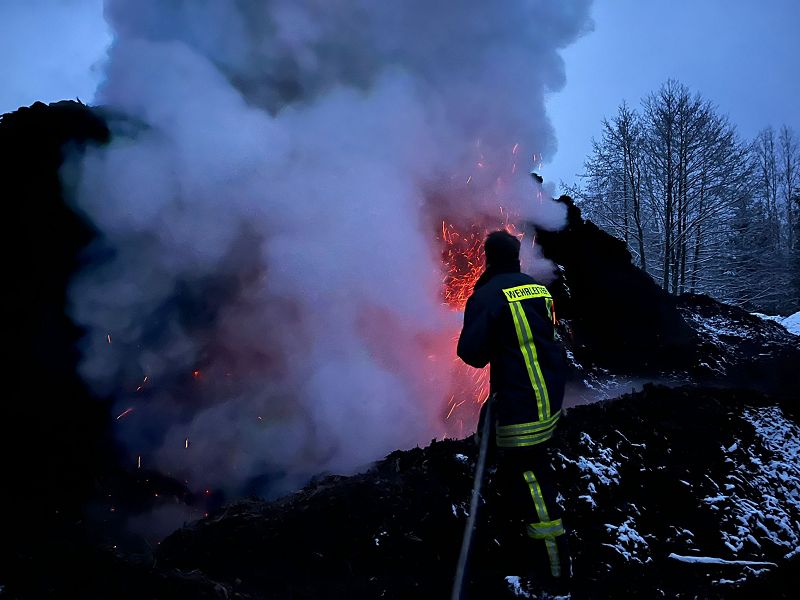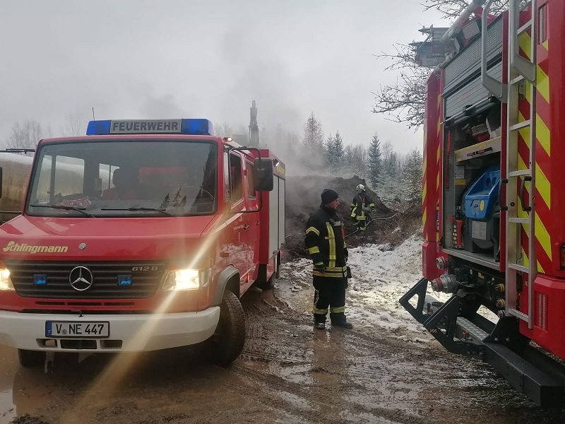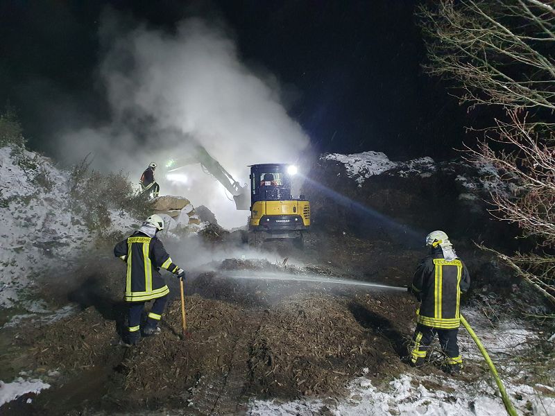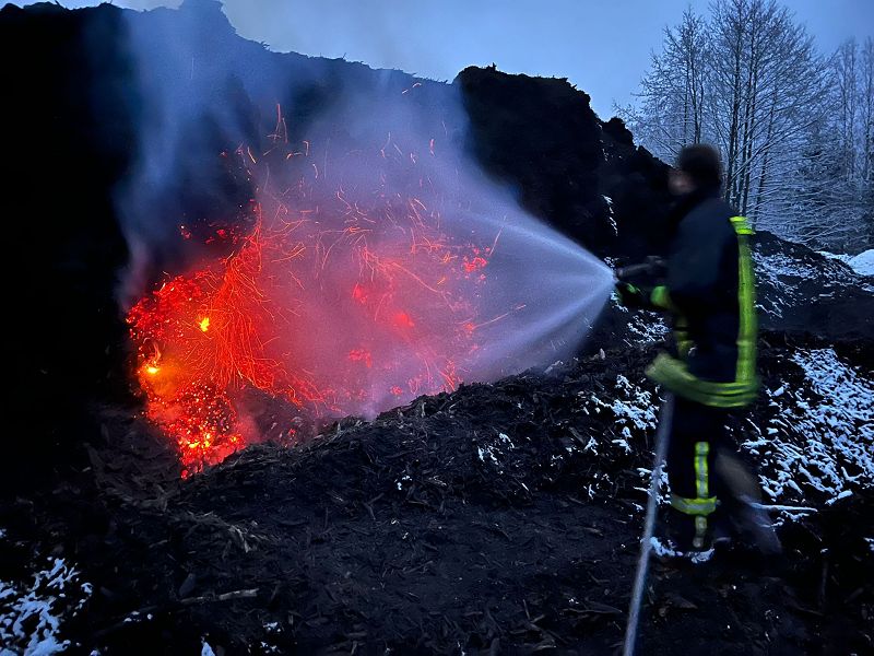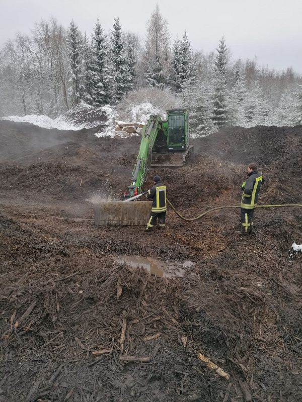 Vermutlich durch Selbstentzündung brannte ein Hackschnitzelhaufen auf einem Lagerplatz am alten Bahnhof Muldenberg.