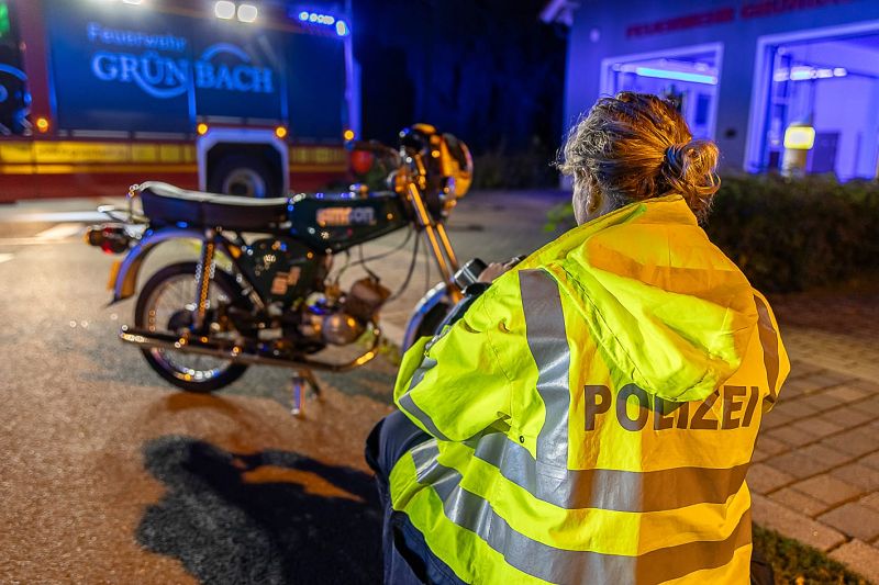 Gemütlich saßen die Kameradinnen und Kameraden hinter ihrem Feuerwehrhaus, als sie am frühen Abend heftiges Moped Knattern vernommen hatten, das plötzlich verstummte. Hier ist was passiert meinten alle und schauten um das Feuerwehrhaus auf die Hauptstraße.