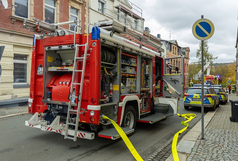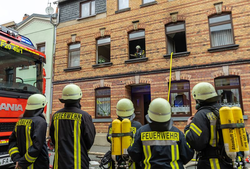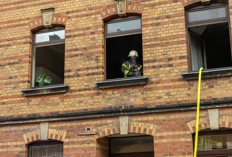In einem mehrgeschossigen Wohngebäude an der Falkensteiner Ferdinand-Lassalle-Straße brannte Essen an und setzte die gesamte Küche in Flammen.