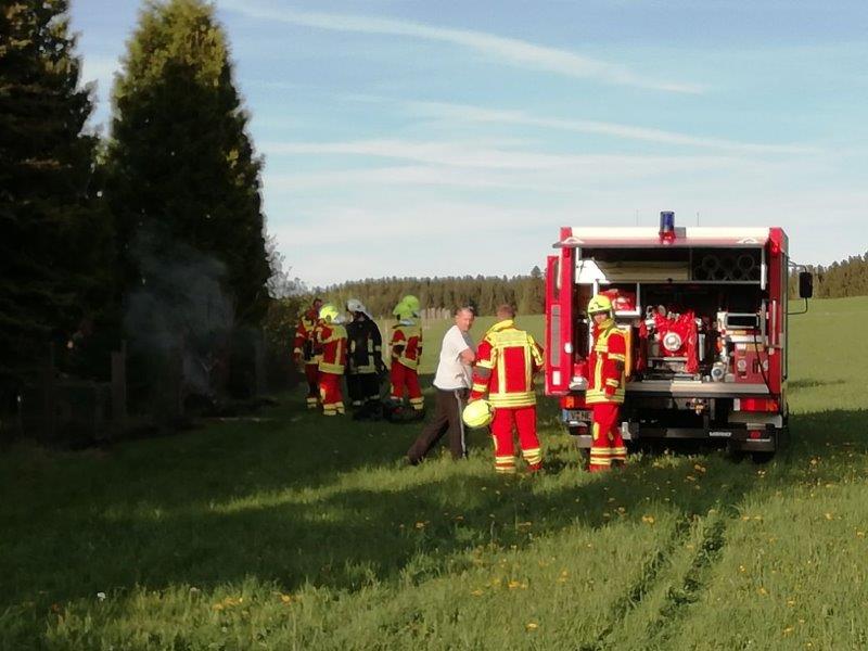 Am frühen Abend wurden die Einsatzkräfte nach Neustadt gerufen mit dem Alarmstichwort "Brand Feld/Wald/Wiese". Vor Ort wurde ein Kleinbrand eines Komposters festgestellt, der sich leicht auf die angrenzende Wiese ausweitete. Das Feuer konnte durch die Kameraden aus Neustadt und Grünbach schnell gelöscht werden. Neustadt löschte mit dem Schnellangriff ab, Grünbach zog den glimmenden Haufen mit Handwerkzeug auseinander. Perfekte Zusammenarbeit! Somit konnte der Kleineinsatz bereits nach 20 Minuten beendet werden.