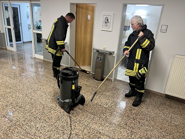 Die Einsatzkräfte aus Grünbach und Muldenberg gingen dieses Mal nicht mit Schlauch und hydraulischen Rettungsgeräten zum Angriff über, sondern mit Gummilippen und Naßsauggeräten der Feuerwehr.