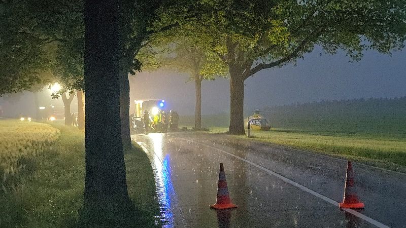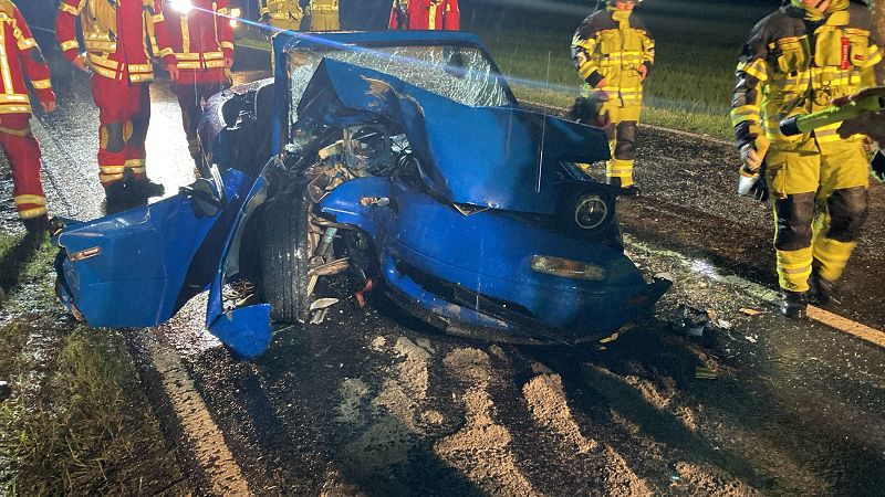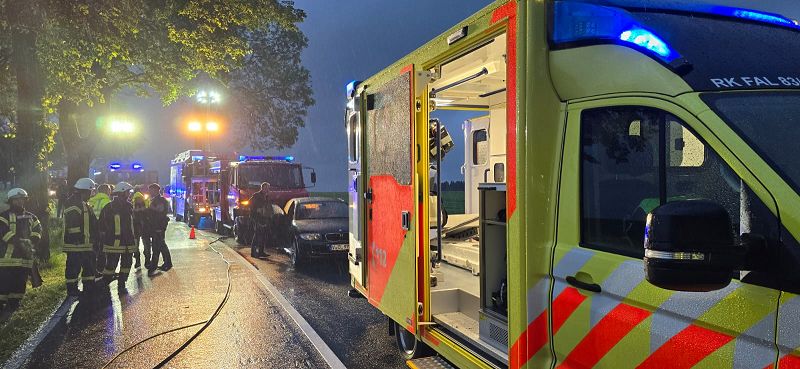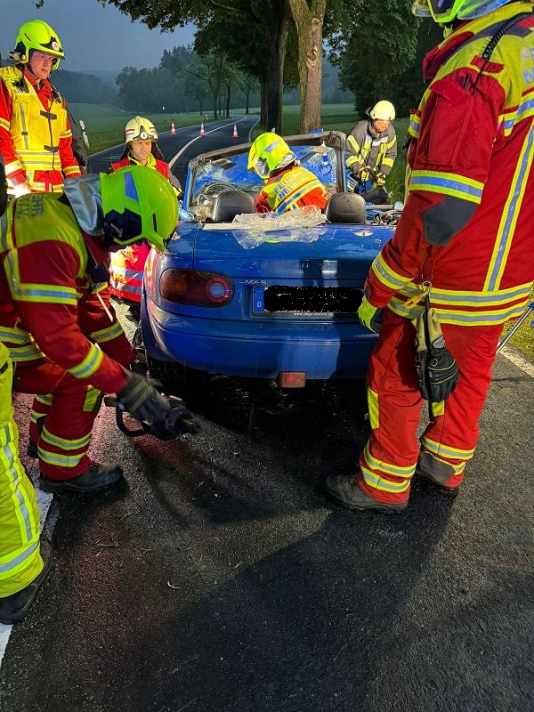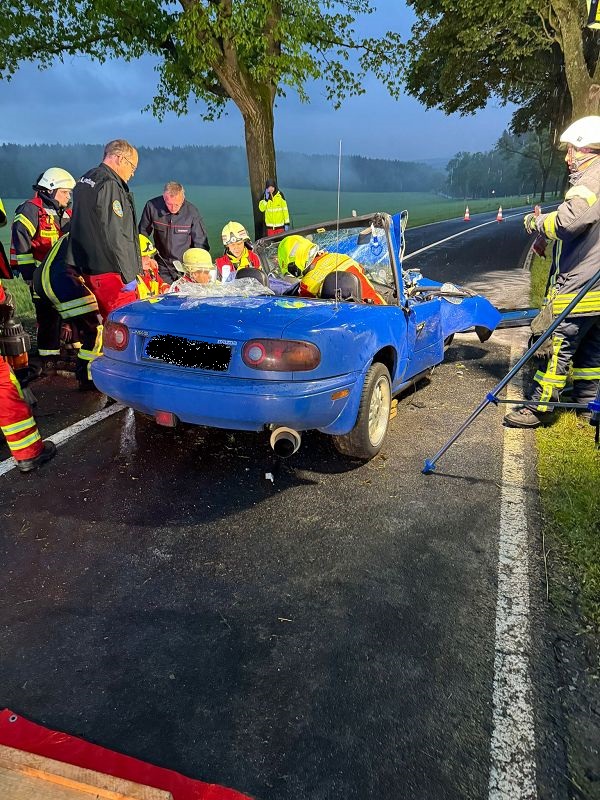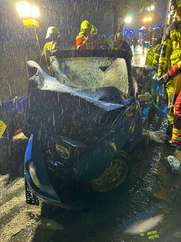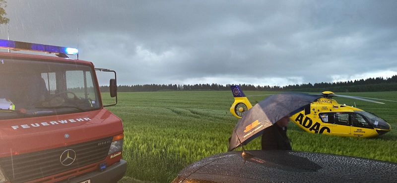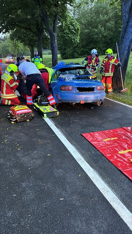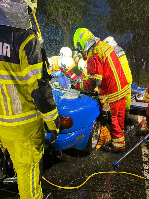 Die Freiwillige Feuerwehr Grünbach wurde zur Unterstützung der zuständigen Ortsfeuerwehr an die Verbindungsstraße von Poppengrün nach Bergen alarmiert. Dort kam es zu einem schweren Verkehrsunfall mit einer schwer verletzten Person. Der Fahrer des PKW`s musste durch hydraulische Rettungsgeräte der Feuerwehren aus dem Fahrzeugwrack heraus geschnitten werden. Dies gelang dann auch, so dass der Fahrer mit dem Rettungshubschrauber ins Krankenhaus geflogen werden konnte. Die Rettungsarbeiten mussten bei starkem Regen durchgeführt werden.