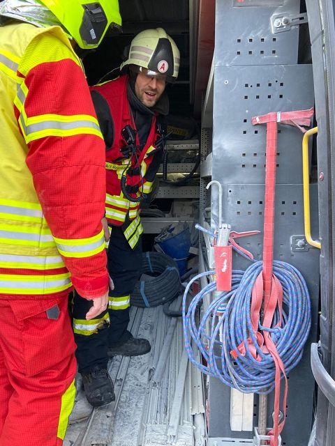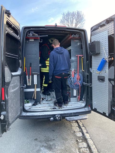 Auf der Oelsnitzer Straße in Neustadt, am Abzweig zur Siebenhitzer Straße kam es in einem Transporter zu einem Brand im Laderaum. Ursache waren offensichtlich Ladegeräte oder Akkus von Werkzeugen.