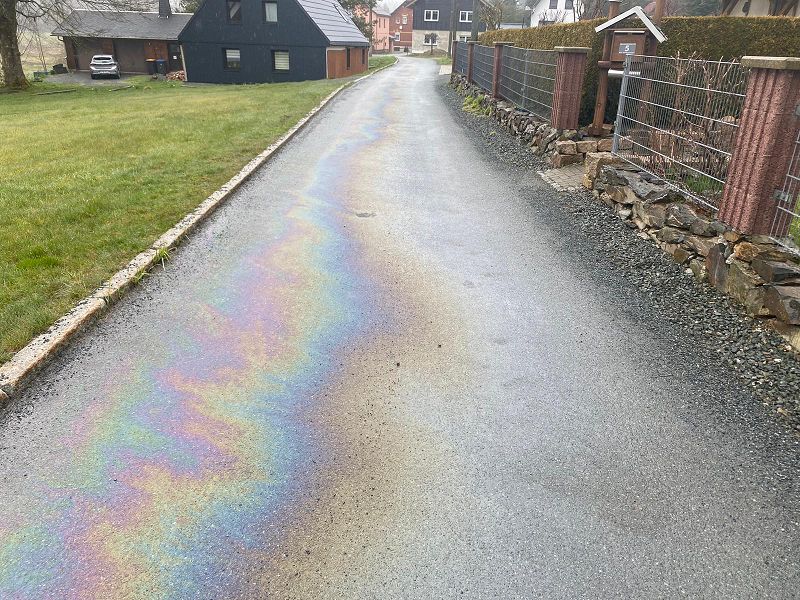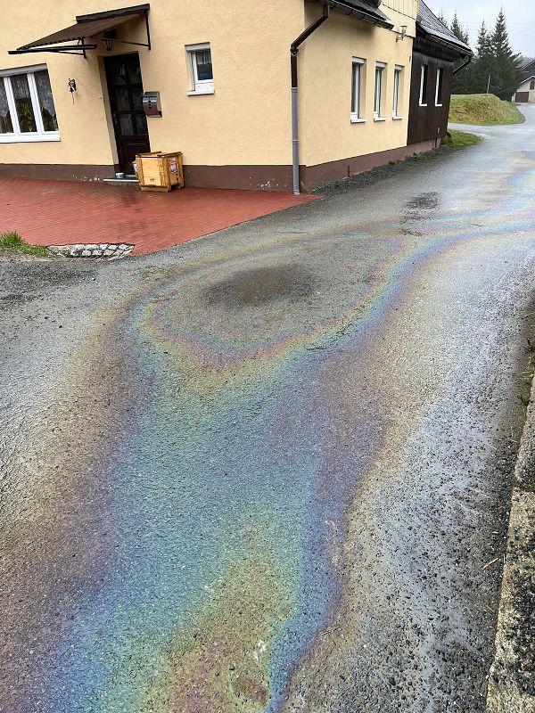Ein Lieferfahrzeug kam aus einem Waldgrundstück Nähe Hammerbrücke und beschädigte sich seinen Ölkühler am Fahrzeugboden. Die Fahrstrecke konnte von Hammerbrücke über Muldenberg und Grünbach bis zum Bahnübergang Falkenstein festgestellt werden. Die beiden Ortsfeuerwehren aus Muldenberg und Grünbach sicherten die Beräumungsarbeiten, den auf Grund des Umfanges musste die Ölwehr des Vogtlandkreises (Firma Lohr) eingesetzt werden. Mit einer mobilen Schüttmulde wurde am Fahrzeug das restliche auslaufende Öl gefangen. Die Umwelt- und Wasserbehörde wurde informiert.
