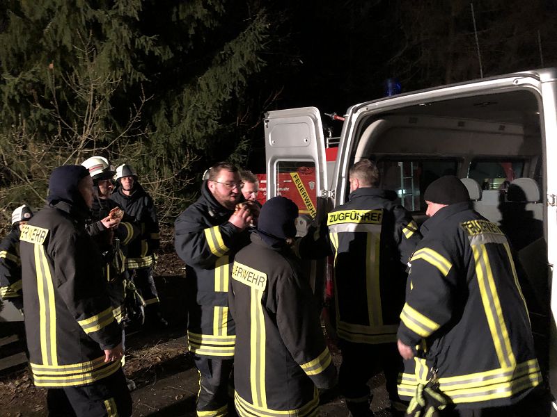 Die Restlöscharbeiten übernahmen dann die Falkensteiner Wehren, die sich auch hervorragend um alle Einsatzkräfte in Sachen Versorgung kümmerten: schnell stand heißer Tee, Kaffee und auch eine Bockwurst für die Einsatzkräfte bei den frostigen Temperaturen bereit. Klasse!