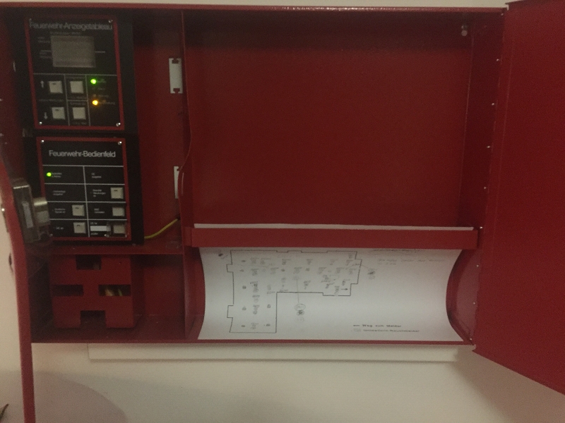 Im Objekt laufen derzeit umfangreiche Neubauarbeiten am Brandschutz und auch an der Brandmeldeanlage. Leider war der Zugang zu den feuerwehrspezifischen technischen Einrichtungen nicht möglich. Die Feuerwehr musste diese Einrichtung leider ohne Schlüssel öffnen. Es waren nicht passende Profilzylinder verbaut.