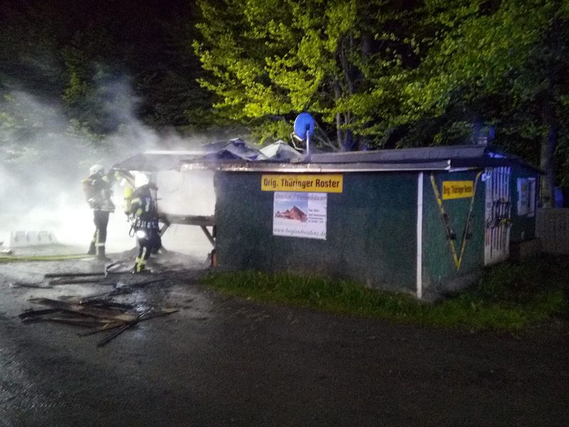 Die Einsatzkräfte der Feuerwehren Grünbach, Muldenberg und Klingenthal wurden zu einem "Mittelbrand" an den Parkplatz "Schneidersberg" zwischen Muldenberg und Klingenthal gerufen. Dort brannte ein Imbissgebäude. Das schnelle handeln aller Kräfte verhinderte die Totalzerstörung des in Holzbauweise errichteten Gebäudes.