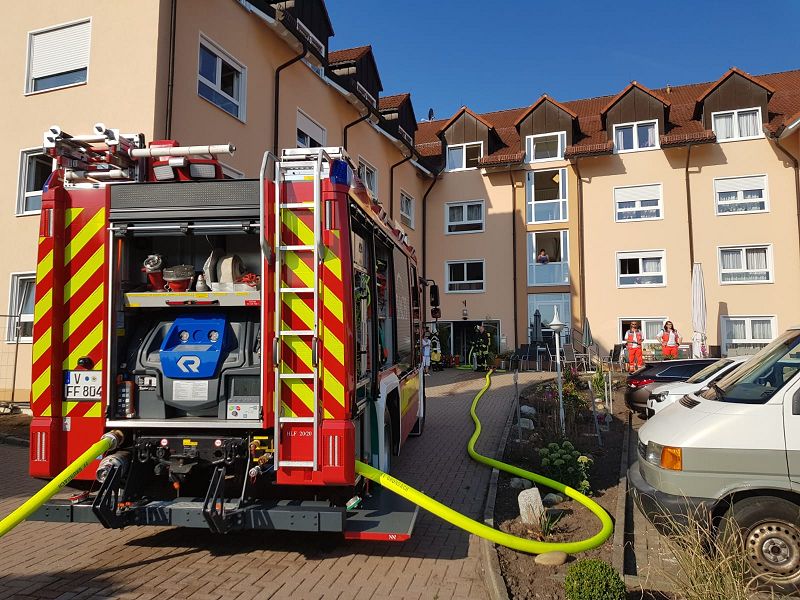 Am Donnerstag Vormittag wurden die Grünbacher Einsatzkräfte zu einem Brand in das Seniorenzentrum an der Bahnhofstraße alarmiert. Erkannt hat den Brand die neu installierte automatische Brandmeldeanlage (BMA) des Pflegeheimes.
