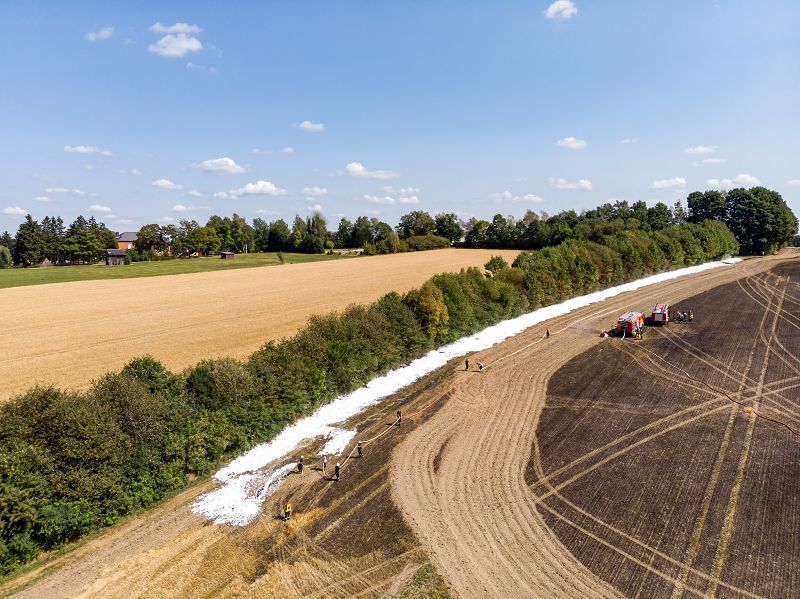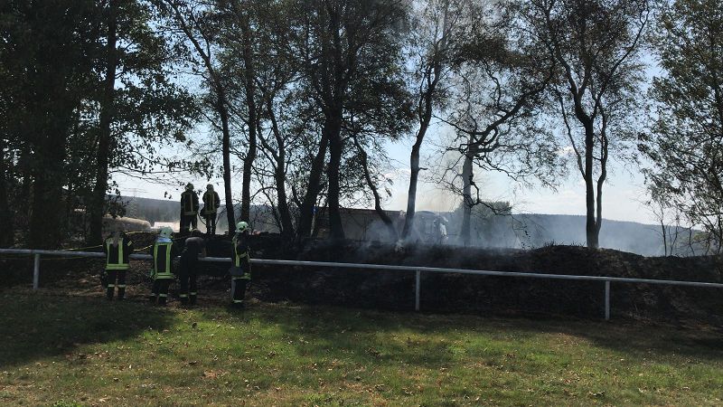 Durch das schnelle Handeln der annähernd 60 Einsatzkräfte von 7 umliegenden Feuerwehren, aber auch der Mitarbeiter des arbeitenden Landwirtschaftsbetriebes konnte Schlimmeres verhindert werden. Die angrenzenden Böschungen wurden zusätzlich zum Schutz vor den Flammen mit einem Schaumteppich geschützt.