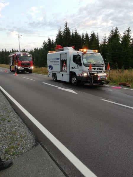 Nach einer Kollision mit einem Reh durch einen Transporter mit Kurieraufgaben, kam es zu auslaufenden Betriebsflüssigkeiten über eine Strecke von etwa 100 m auf der S 304 von Muldenberg nach Grünbach. Ein Personenschaden war zum Glück nicht zu verzeichnen, das Reh verendete aber durch den Aufprall.