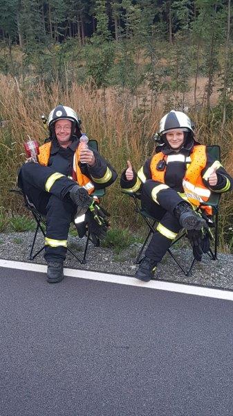Um die Fahrbahn wieder verkehrssicher zu machen, wurde die Ölwehr des Vogtlandkreises beauftragt, die Flüssigkeiten zu binden und aufzunehmen. Die hierfür erforderlichen Sicherungsmaßnahmen und auch dei Ausleuchtung der Einsatzstelle übernahmen die Grünbacher Kameraden.
