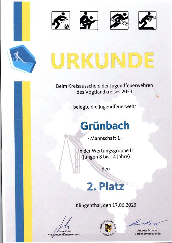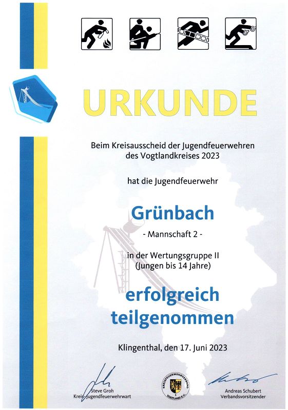 Glückwunsch dem Grünbacher Nachwuchs, den beiden Teamleiterinnen Nadja und Lydia, aber vor allem der gesamten Jugendleitung der Feuerwehren Muldenberg und Grünbach in der Wettkampfvorbereitung, die diesen Erfolg erst möglich machten! Wir lassen uns trotz dieser Enttäuschung durch die Terminplanung des sächsischen Landesjugendverbandes nicht entmutigen!