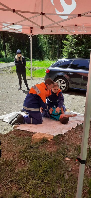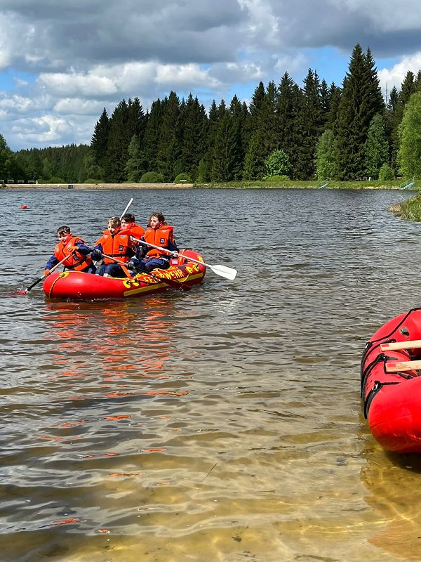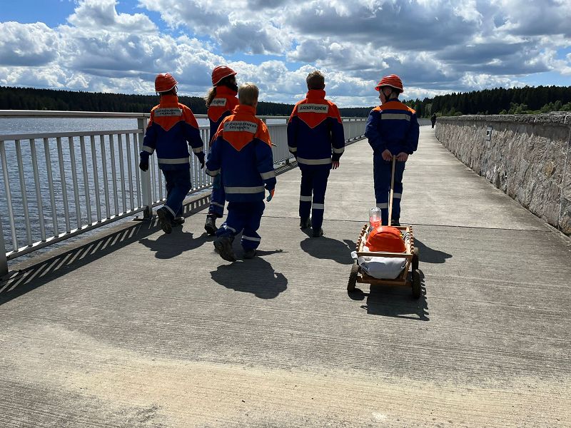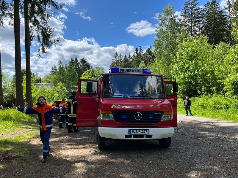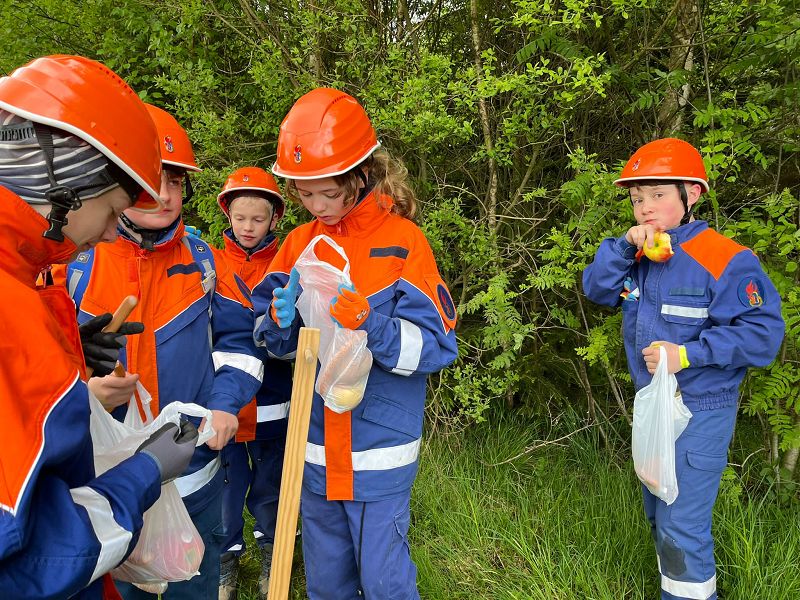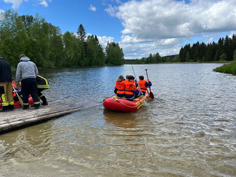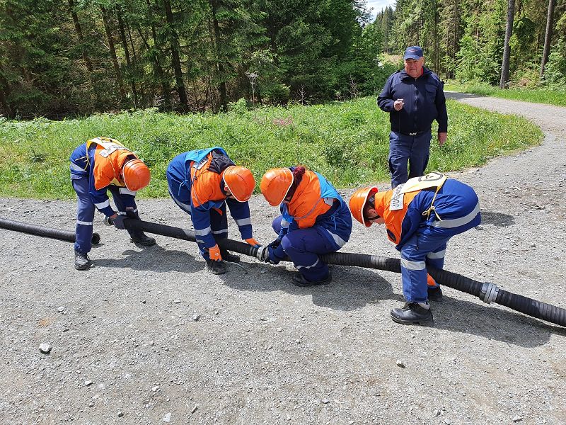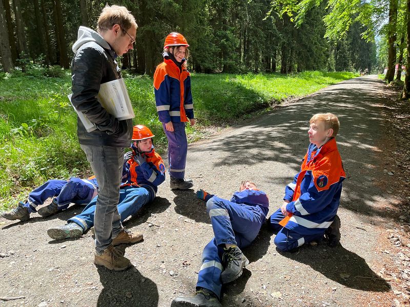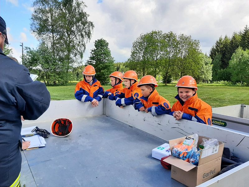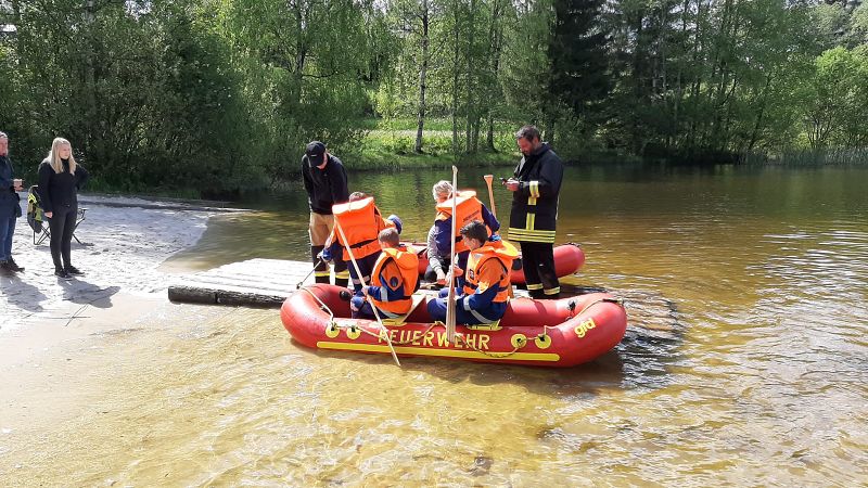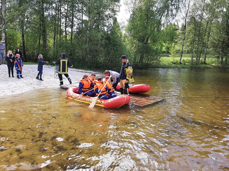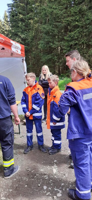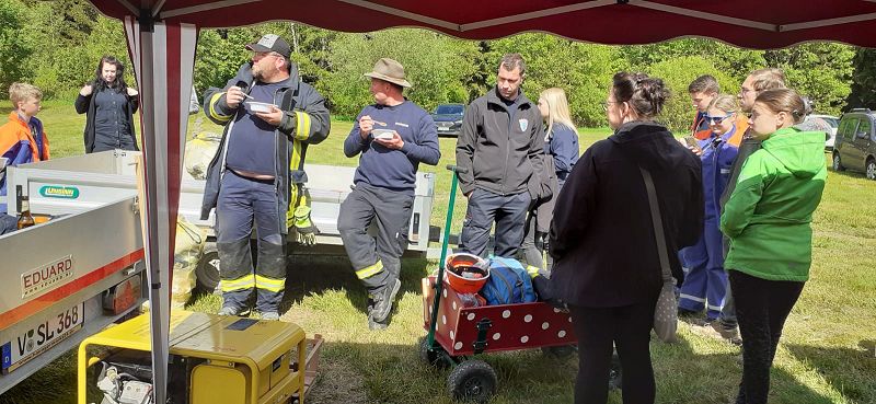 Auf der Strecke verteilt, mussten verschiedene Stationen absolviert werden. C-Schlauch ausrollen, Erste Hilfe Maßnahmen, Knoten und vieles weitere Feuerwehrfachwissen wurde abgefragt. Insgesamt waren es 8 Stationen die gemeistert werden mussten. Nach ca. 4h erreichten alle Mannschaften geschafft, aber fröhlich, das Ziel am Badeteich in Muldenberg, an dem sie auch gestartet waren.
