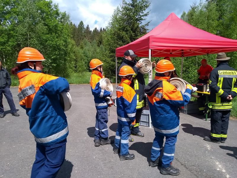 Die Jugendfeuerwehr Grünbach nahm mit 3 Mannschaften in der Wertungsgruppe 1 (bis 13 Jahre) teil. Die Mannschaften bestanden aus 5 Wettkämpfern inkl. Ersatzstarter und einem oder mehreren Betreuern. 8.45 Uhr starteten die ersten Teams auf die ca. 5km lange Strecke. Unsere Mannschaften starteten gegen 11.20 Uhr im Abstand von 10min.