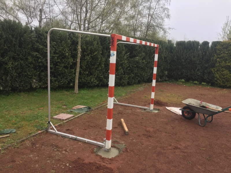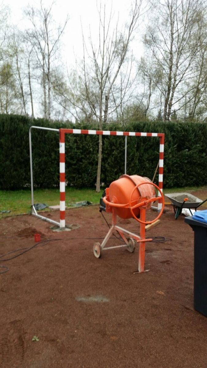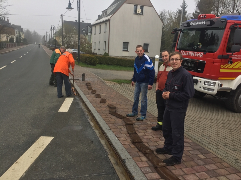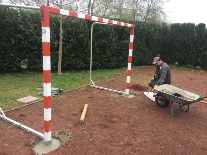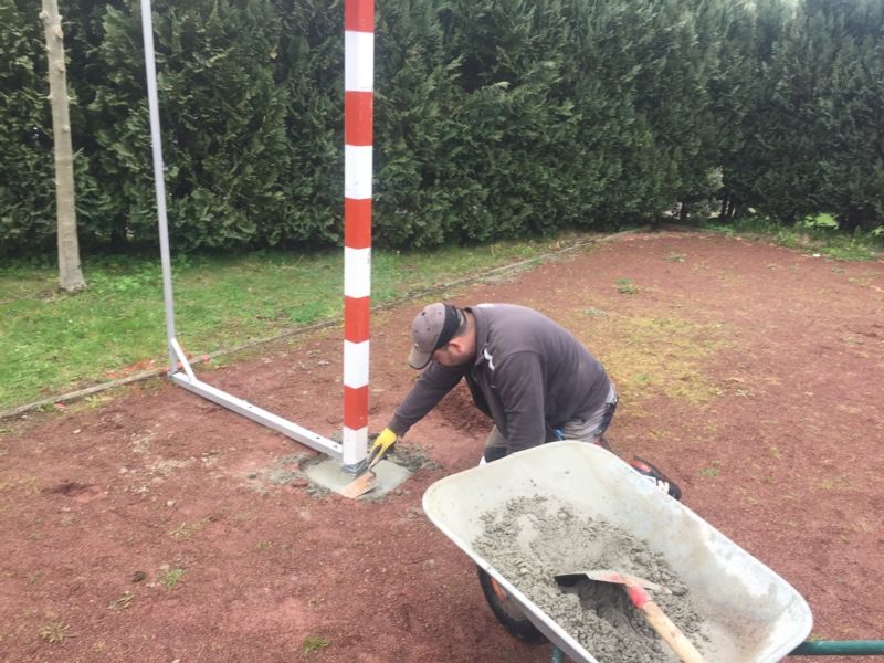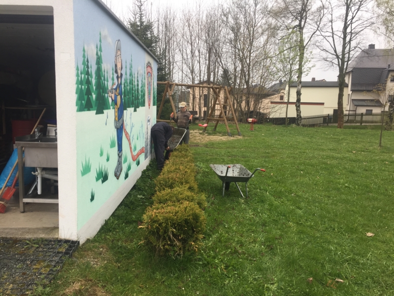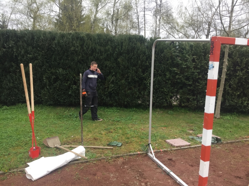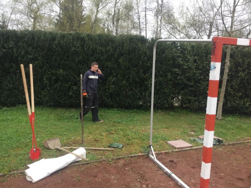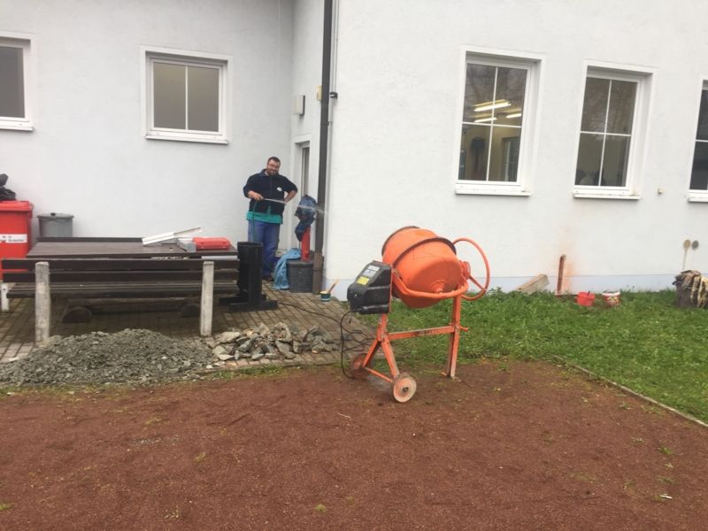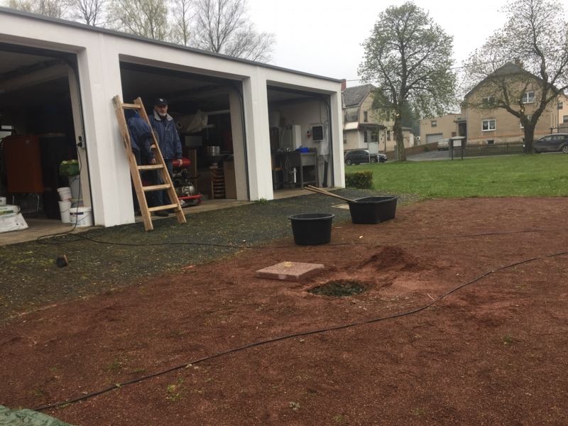 Schwerpunkt war der Einbau der neuen Fußballtorfundamente im Volleyballplatz. Die Tore wurden gesponsort und können bald zum Bolzen genutzt werden. Sie können zur besseren Zugänglichkeit in die Garagen auch entnommen werden. Die Entwässerungsrinne an der Staatsstraße wurde geöffnet und grundhaft gereinigt. Das gesamte Erdgeschoß wurde mit einer Fußbodenreinigungsmaschiene gesäubert. Diese stellte uns erneut das Lebenszentrum Grünbach kostenfrei zur Verfügung- eine große Geste! Die Hecken wurden mit Rindenmulch angedeckt und die Fahrzeuge einer Inspektion unterzogen. Auch die Küche und so manche verborgene Lagernische erhielt eine Entrümpelung und wurde gesäubert. Zusätzlich fanden wir noch Zeit die Garagen vom Wintermüll zu beräumen, ein neues Entwässerungsrohr aus der Fahrzeughalle zu installieren und einige lose Fliesen wieder anzubringen.