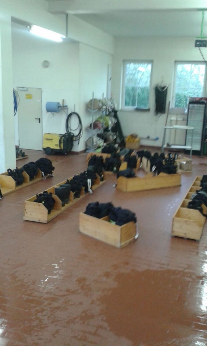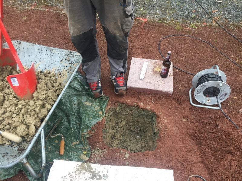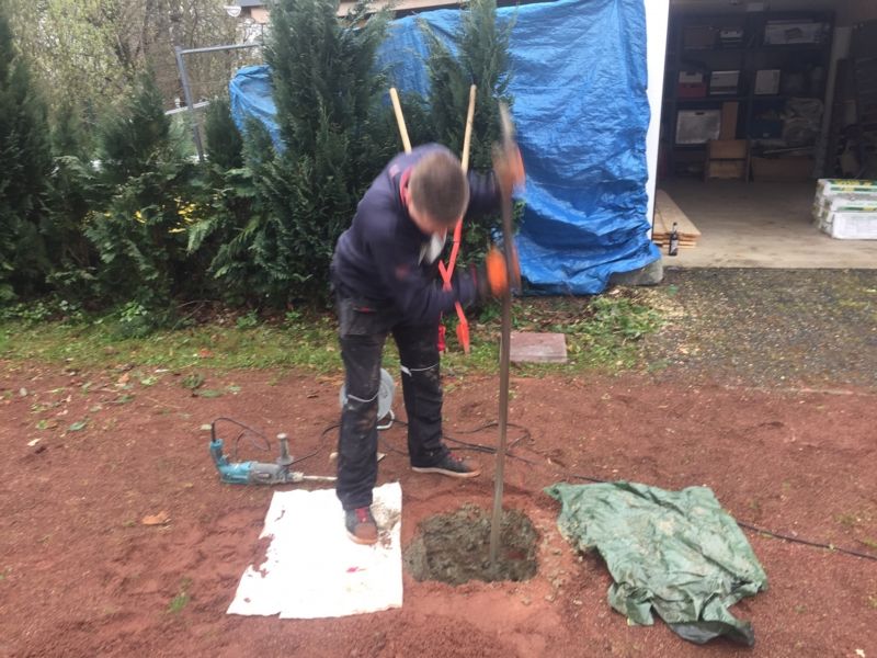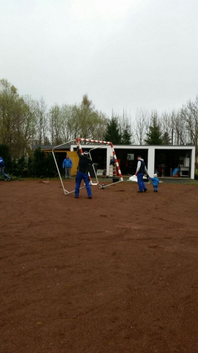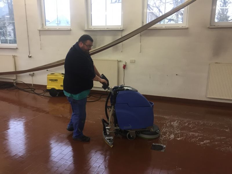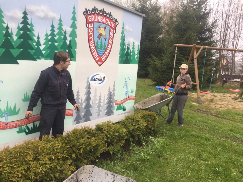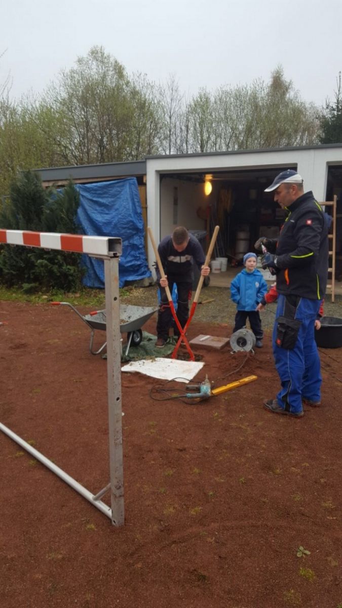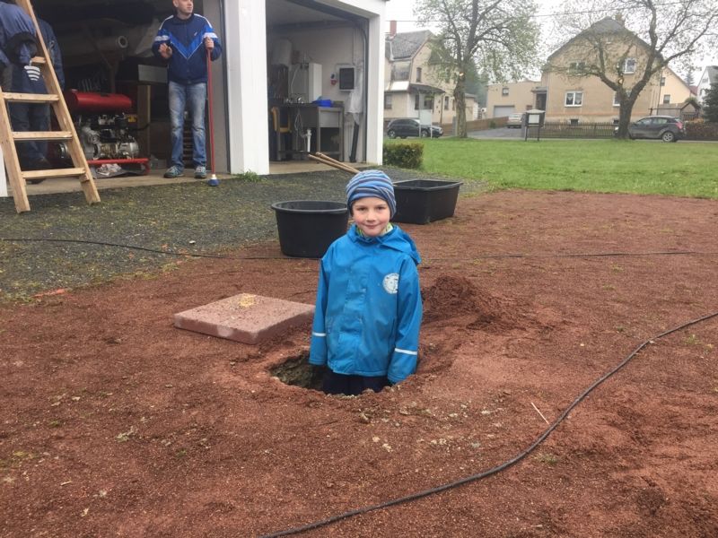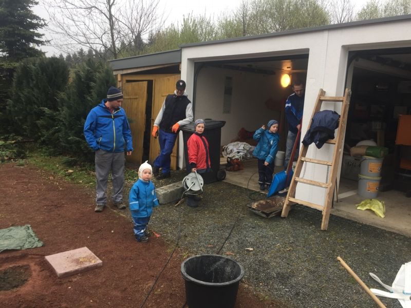 Schwerpunkt war der Einbau der neuen Fußballtorfundamente im Volleyballplatz. Die Tore wurden gesponsort und können bald zum Bolzen genutzt werden. Sie können zur besseren Zugänglichkeit in die Garagen auch entnommen werden. Die Entwässerungsrinne an der Staatsstraße wurde geöffnet und grundhaft gereinigt. Das gesamte Erdgeschoß wurde mit einer Fußbodenreinigungsmaschiene gesäubert. Diese stellte uns erneut das Lebenszentrum Grünbach kostenfrei zur Verfügung- eine große Geste! Die Hecken wurden mit Rindenmulch angedeckt und die Fahrzeuge einer Inspektion unterzogen. Auch die Küche und so manche verborgene Lagernische erhielt eine Entrümpelung und wurde gesäubert. Zusätzlich fanden wir noch Zeit die Garagen vom Wintermüll zu beräumen, ein neues Entwässerungsrohr aus der Fahrzeughalle zu installieren und einige lose Fliesen wieder anzubringen.