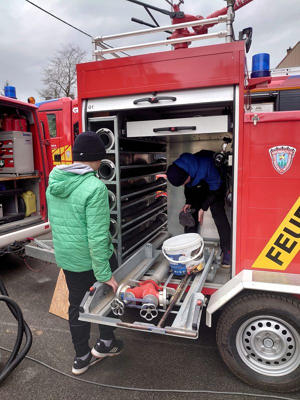 Die jungen Nachwuchsfeuerwehrleute waren von Beginn an sehr eifrig bei der Sache und sorgte für das Erreichen unseres Tagesziel. Unsere Florianis wickelten die Schläuche und räumten sie ins Regal, reinigten alle Fahrzeuginnenräume und die Geräteräume mit Staubsauger und feuchten Tüchern!
