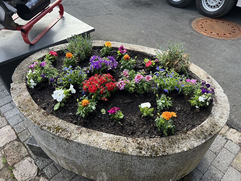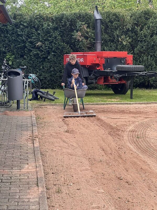Auf dem Spielplatz wurde der Fallschutzkies begradigt und beim Schaukelwipper der Kid`s die Einspannstelle neu angehäuft. Zu guter Letzt erhielt das kümmerliche Pflanzbeet am Eingang eine neue wunderschöne bunte Bepflanzung!