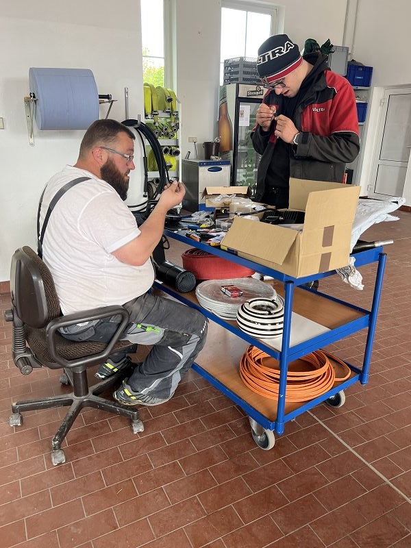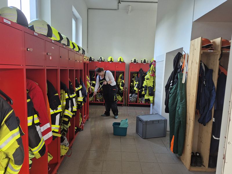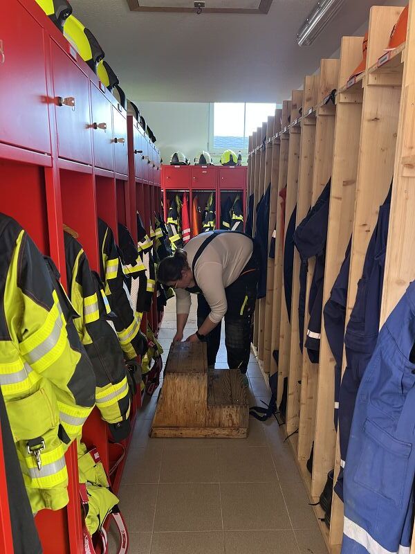 Die Fahrzeughalle und der Umkleidebereich wurde grundhaft gewischt. Unsere Elektriker verlegten eine neue Stromleitung vom Stromkreis der Notstromversorgung in das Wehrleiterzimmer im Obergeschoß und bastelten an der neuen Beleuchtung unseres Schlauchhängers!
