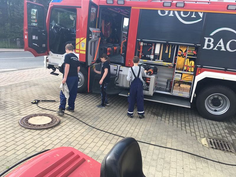 Auch das Fahrzeug erhielten einen Servicecheck und wurden von den Jugendfeuerwehrleuten in den Geräteräumen gereinigt. Spitze!