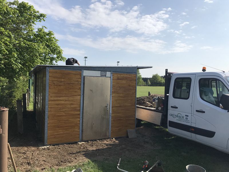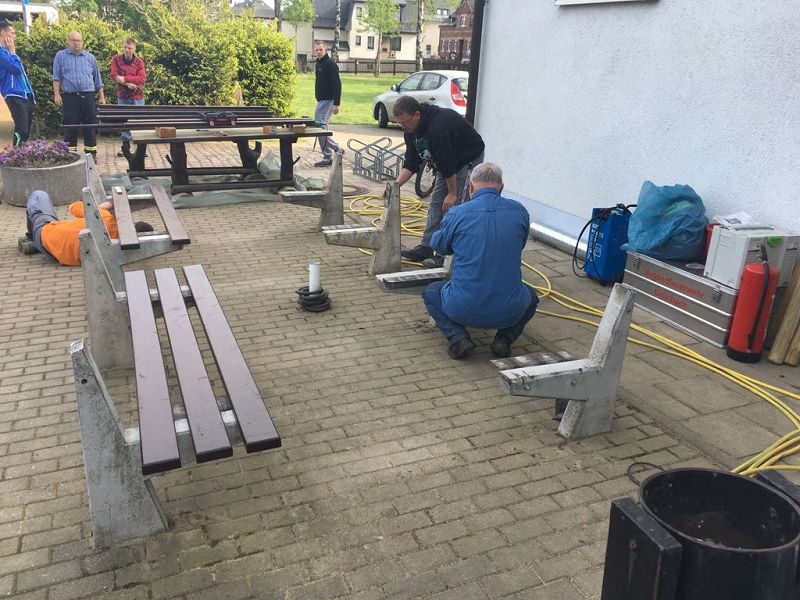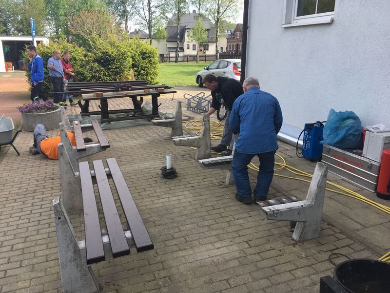 Am Festplatz wurde an den Grillhütten weiter gebaut. Das Dach wurde abgedichtet und der Fußboden in einer Hütte von Mitglieder des DRK`s neu gebaut!