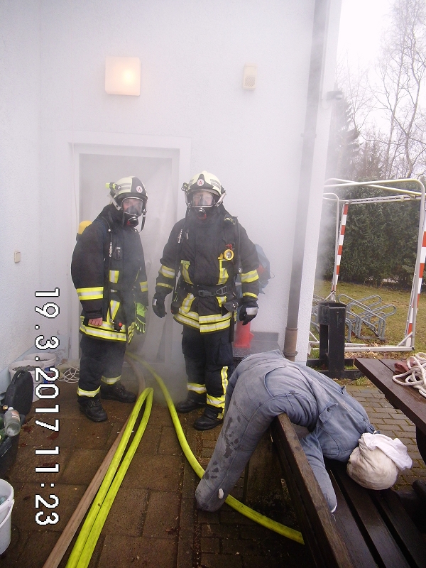 Überwacht wurden die Trupps durch die Wärmebildkamera der eignen Wehr. Eine gelungene Premiere für alle. Für die nicht im Atemschutzeinsatz stehenden Kameraden wurde nach dem langen Winter erstmals im Außengelände des Kispi-Gebäudes geübt. Dabei stand die Löschwassereinspeisung aus dem Tiefbrunnen in das HLF 20 auf dem Ausbildungsplan und auch hier wurden einige Erkenntnisse für die zukünftige Arbeit gewonnen.