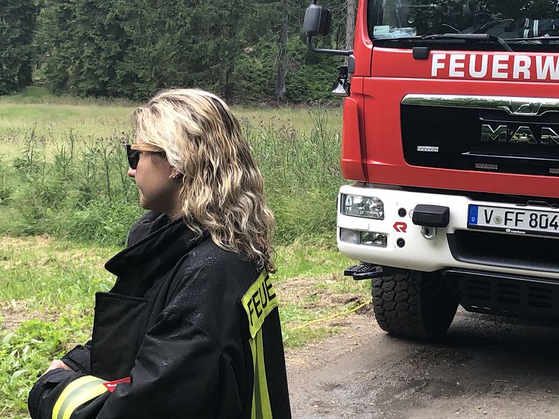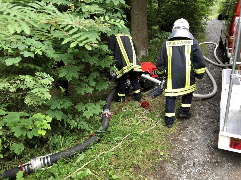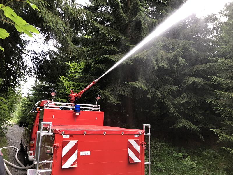 Zum Glück war es aber kein Biber, der Bäume fällt und Dämme baut, das neueste Einsatzhilfsmittel der Grünbacher Feuerwehr heißt "Biber" und bestand unter den kritischen Augen der Kameradinnen und Kameraden seine erste Bewährungsprobe - und man darf vorweg sagen, mit Bravour!