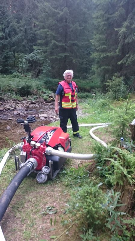 2. Den Löschangriff bei sengender Hitze (Die Außentemperaturen lagen bei etwa 30 Grad) in einer bergigen Höhe von etwa 60m über der Wasserentnahmestelle mit drei Trupps unter Atemschutz zu führen.