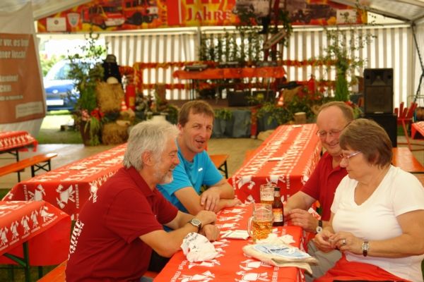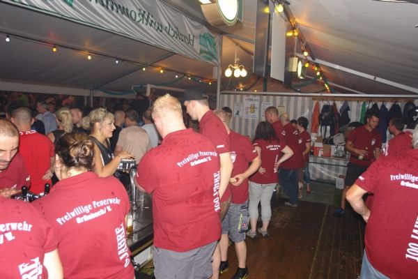Für alle Kameraden hieß es dann schnell umziehen um den Kirmesbetrieb am Abend abzusichern und so schlüpften alle in Ihre weinroten Jubiläumspoloshirts, mitfinanziert von der Firma Schedel Kunststofftechnik aus Falkenstein.