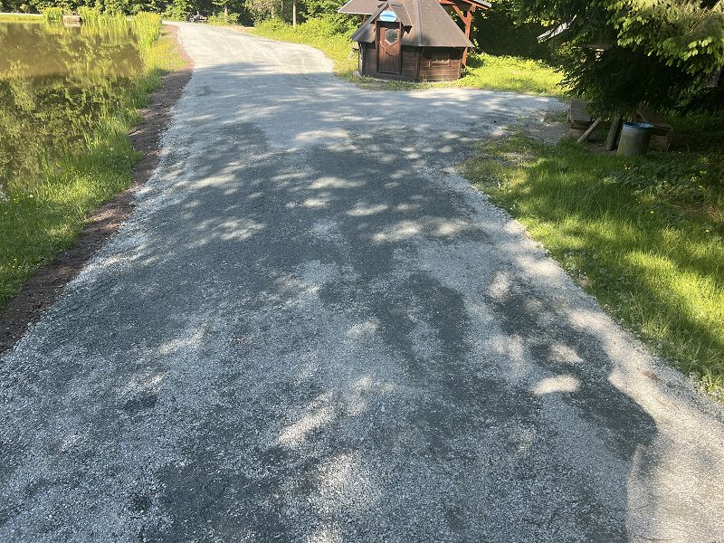 Am ehemaligen Bad kann man ruhige Stunden erleben! Dank unseres Anglervereins ist es zu einem Kleinod in der Gemeinde geworden. Das es aber für die Grünbacher Bürger eines der wichtigsten Löschwasservorräte speichert, wissen nur noch wenige! Aber besonders für den Raum Muldenberger- und Bahnhofstraße, kann das notwendige Löschwasser nicht vollständig aus dem Trinkwassernetz entnommen werden. Der Feuerlöschteich ist die Grundlage für den notwendigen Brandschutz. Und genau aus diesem Grund, hat die Gemeinde Grünbach nun "Nägel mit Köpfen" gemacht und die Zufahrt wieder auf Vordermann gebracht.