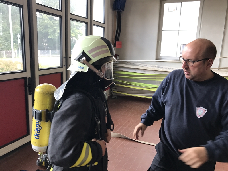 Gerd Kreißl informierte die Gruppen zum Thema Funk und Atemschutz. Dabei wurde die Kanalwahl trainiert, die Umstellung der Geräte erläutert und die Einsatztechnik für die Atemschutznotfalltechnik vorgeführt. Im Mittelpunkt standen auch verschiedene Suchtechniken und Sicherungselemente für die Orientierung.