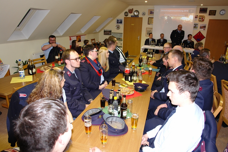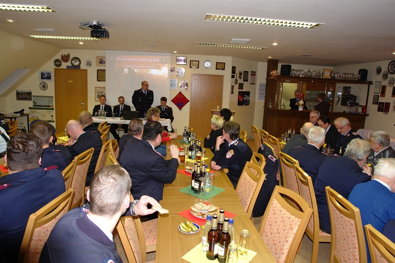In der Jahreshauptversammlung 2018 blickte der Chef der Grünbacher Wehr unter der gewohnt professionellen Leitung von Versammlungsleiter Gerd Kreißl auf ein ereignisreiches Jahr zurück. Dabei konnte der Wehrleiter als Gäste den Grünbacher Bürgermeister Ralf Kretzschmann, den Vertreter des Kreisfeuerwehrverbandes Uwe Tümpner und die Wehrleiter der FF Muldenberg Nils Golla, und der FF Falkenstein Andreas Heller begrüßen. Eine Delegation der österreichischen Partnerfeuerwehr war auch anwesend. Leider fand kein Gemeinderat den Weg ins Feuerwehrhaus.