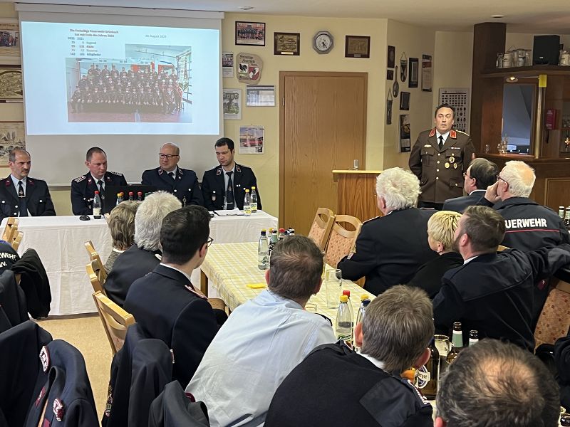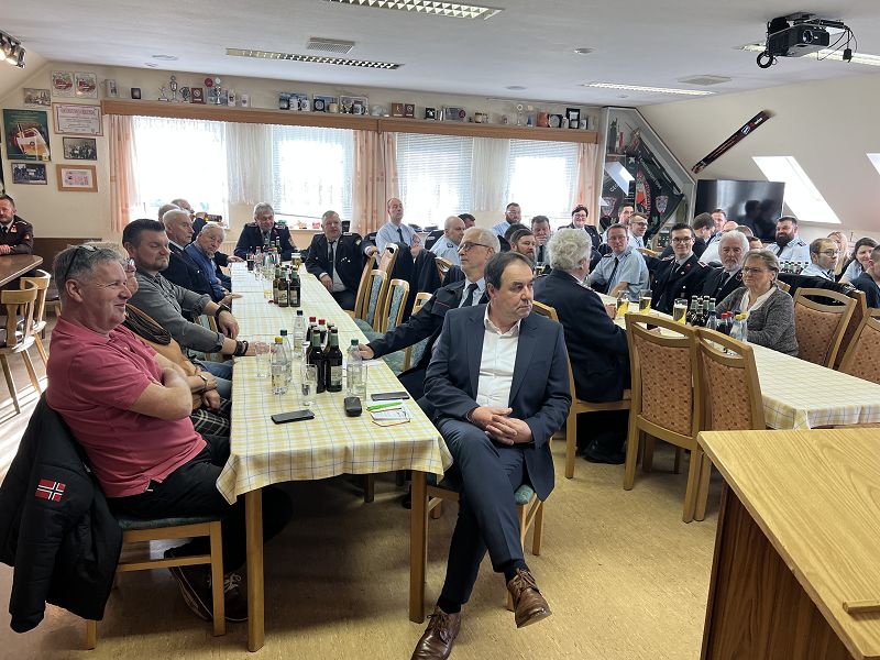 Grußworte kamen auch aus Österreich. Dietmar Preinfalk bilanzierte das Einsatzjahr 2022 aus österreichischer Sicht. Immer wieder bemerkenswert, welch hohen finanziellen Eigenverantwortung die Kameraden in ihrem Ehrenamt im Nachbarland leisten müssen.