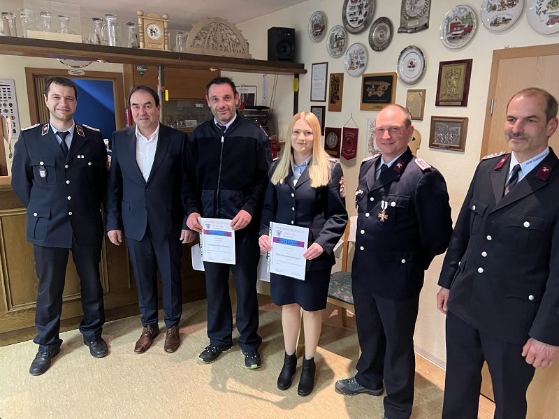 Im Anschluß wurden viele Ehrungen durch Wehrleitung, Bürgermeister und Kreisfeuerwehrverband ausgesprochen. Im Einzelnen konnten sich folgende Kameradinnen und Kameraden freuen: