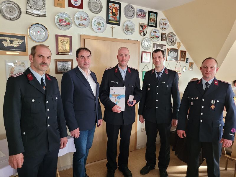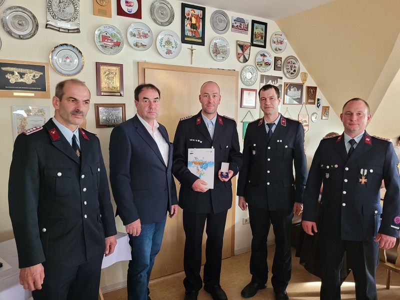 - Der Alterskamerad Karl-Heinz Ficker erhielt vom Kreisfeuerwehrverband das Ehrenabzeichen für 40 Jahre Feuerwehrmitgliedschaft in Gold