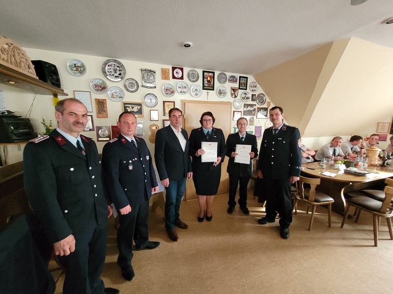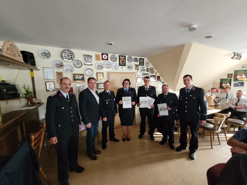- Ernannt wurde Max Hums zum neue Atemschutzgeräteträger, Silvio Blank und Max Hums zum Truppführer und Lydia Buchheim zum weiteren Sicherheitsbeauftragten unserer Feuerwehr