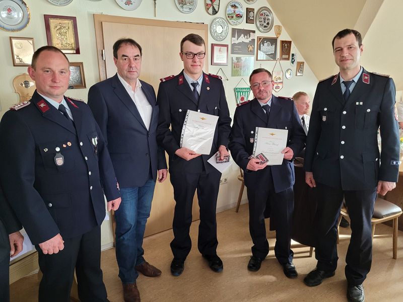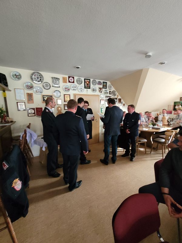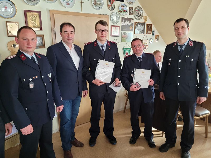 Im Anschluss wurden viele Ehrungen durch Wehrleitung, Bürgermeister und Kreisfeuerwehrverband ausgesprochen. Im Einzelnen konnten sich folgende Kameradinnen und Kameraden freuen: