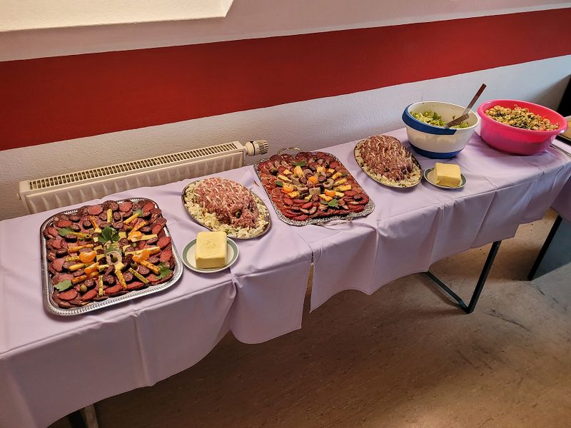 Nun galt es mit einem Schlußwort von Gerd Kreißl den gemütlichen Teil mit einem kalten und warmen Buffett einzuläuten. Wie die Bilder zeigen, konnten sich alle auf einen leckeren Abendschmaus freuen. Das Bier sponsorte unser Vereinsmitglied Bernd Jakob. Vielen Dank dafür!