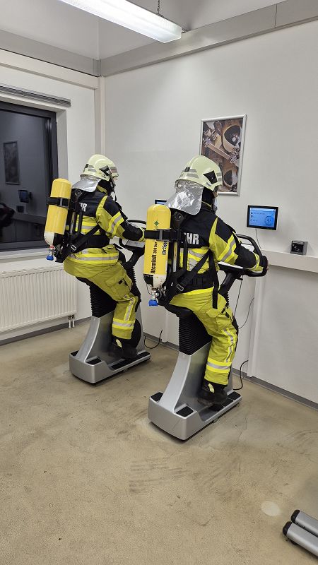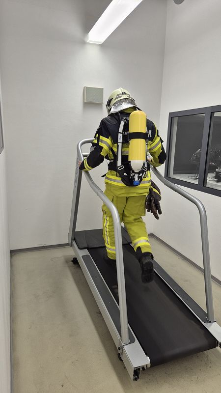 Der Check ist Pflicht, um über das Jahr bei den schweren Brandeinsätzen in den Innenangriff gehen zu können. Nachdem zunächst der Medizincheck vom Personal der BF mit Blutdruck, Puls und Sauerstoffsättigung durchgeführt worden sind, müssen die Jungs (Mädchen gibt es aktuell leider nicht mehr) auf dem Laufband, oder auf der Endlosleiter auf Puls kommen. Dann geht es Truppweise durch die Atemschutzanlagen. Diese besteht aus Gitterrostkäfigen, die meist kriechend gemeistert werden müssen.