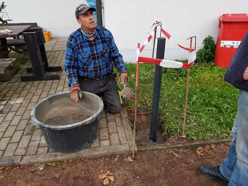 Die Montagepfosten von zwei gesponsorte Papierkörbe wurden einbetoniert, bald können sie montiert werden und der Müll muss nicht einfach ins Gelände verstreut werden. Hecken wurden geschnitten, Freiflächen gesäubert.