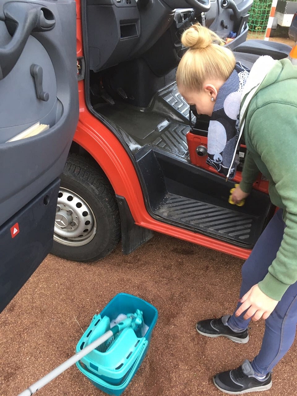 Aber auch im Feuerwehrhaus wuselte es wie im Bienenschwarm. Die Halle wurde mit der Reinigungsmaschiene des Seniorenheimes in Grünbach auf Hochglanz gereinigt. Die Gardinen im Schulungsraum gewaschen und auch die Fahrzeuge grundhaft sauber gemacht.