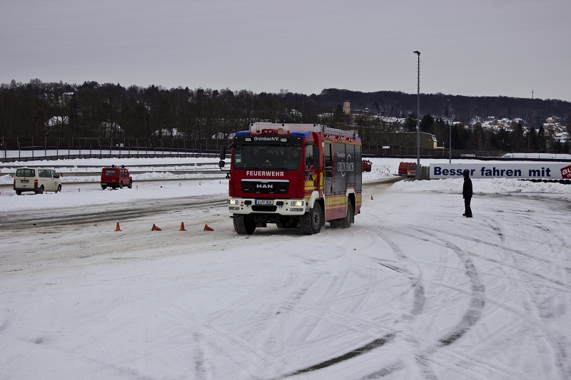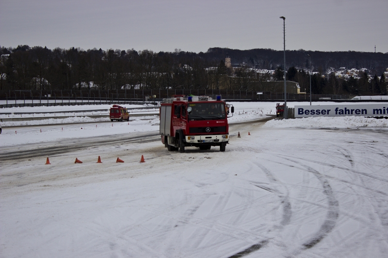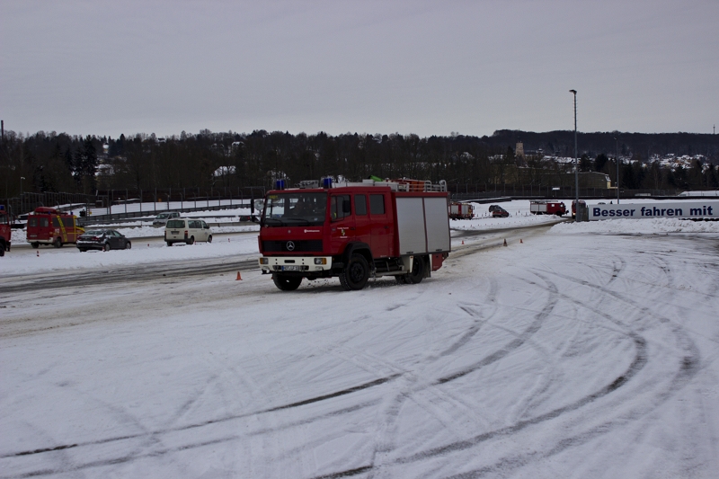 Zum Abschluss des Trainings ging es auf einen Bremskurs bei über 10% Hangneigung. Das Training verlief unfallfrei! Und jeder konnte ein ganzes Stück Gewissheit über die Leistungsfähigkeit seines Löschfahrzeuges gewinnen, Gewissheit aber auch darüber, wie wichtig so mancher elektronische Helfer im Fahrzeug, wie ABS, ESP oder ASR wirklich ist.