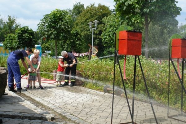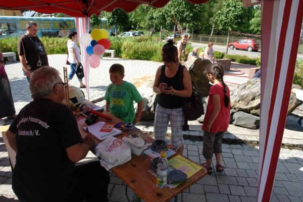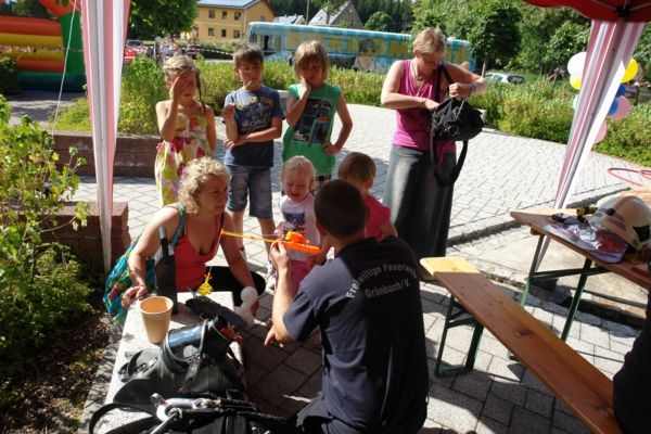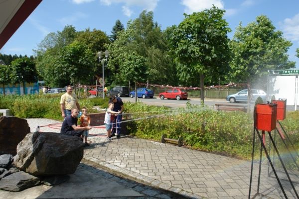 Das Grünbacher Kinderspiel-Haus KISPI hat zum 10-jährigen Jubiläum eingeladen. Grund genug auch für die Grünbacher Feuerwehr mit Präsenz die Feierlichkeiten zu unterstützen. Und es wurde ein rundum gelungenes Fest. Neben Geschicklichkeitsstationen, Streichelzoo und Verkehrssicherheitstraining hatten auch wir uns einen abwechslungsreichen Stand ausgedacht. Zunächst mussten die Kinder knifflige Fragen zur Einsatztechnik beantworten ehe sie dann ihr Können beim Zielspritzen mit Wasser am Strahlrohr unter Beweis stellen konnten. Am Ende gab es eine Brandschutzurkunde der Feuerwehr Grünbach und die beiden Löschfahrzeuge konnten auch noch besichtigt werden.