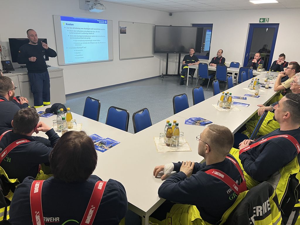 Mario Duda- der Ortsbeauftragte informierte die Grünbacher über die Aufgaben des Reichenbacher THW, über deren Technik und insbesondere über deren Hilfsmöglichkeiten für die Feuerwehrleute. Und die sind dann auch noch meist kostenfrei!