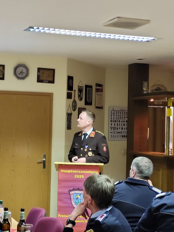 Bürgermeister Ralf Kretzschmann erwähnte in seiner Rede, dass die meisten Grünbacher Arbeit und Einsatzbereitschaft der Grünbacher Feuerwehren sehr würdigen. Hinsichtlich der Nachwuchssorgen regte er einen "Krisengipfel" an, um Lösungen für eine bessere Werbeoffensive zur Mitgliedergewinnung zu finden, was in der Versammlung sehr gut ankam.