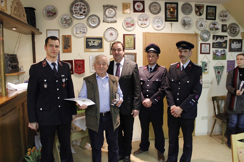 - 60. Jahre Mitgliedschaft Dieter Stöß seit 1959, war Maschinist, aktiver Kamerad und treuer Spender der Feuerwehr. Er erhielt das Ehrenkreuz des Landesfeuerwehrverband für treue Dienste mit Widmung durch Andreas Rümpel dem Vorsitzenden des LFV Sachsen